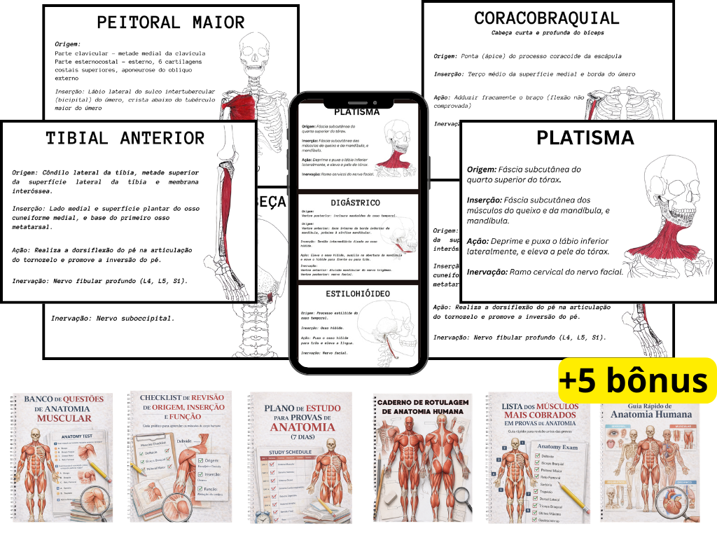 Memorize os músculos cobrados nas provas de anatomia da Educação Física de forma rápida e visual.